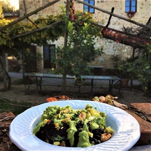 The Ebbio farmhouse is a certified organic farm which extends over 7 hectares of land mainly cultivated with olive trees, vineyards, aromatic herbs, fruit and vegetables.